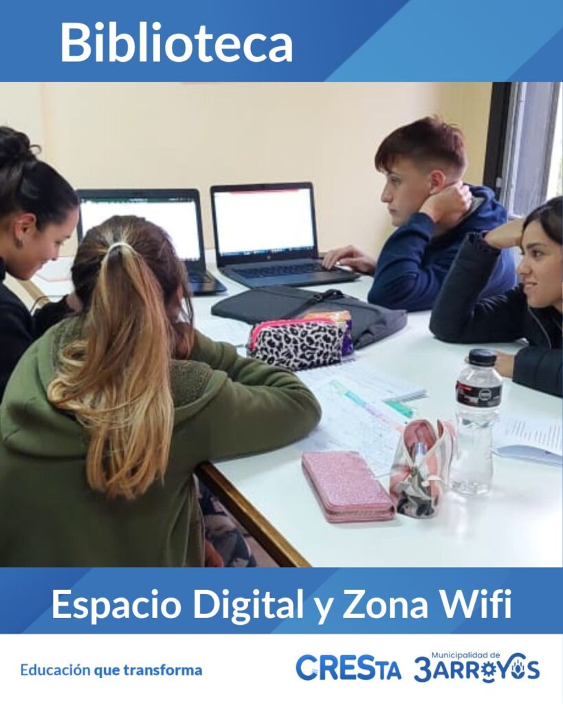 Espacio Digital: con equipos informáticos conectados a Internet y zona wifi para trabajar con notebooks.
